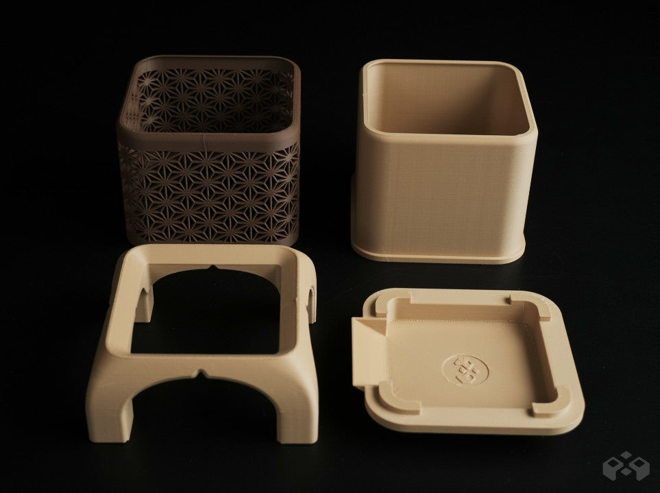 Inspired by traditional Japanese design. This planter features an elegant Kumiko pattern, complete with a drip tray, sturdy legs, and a decorative outer shell.