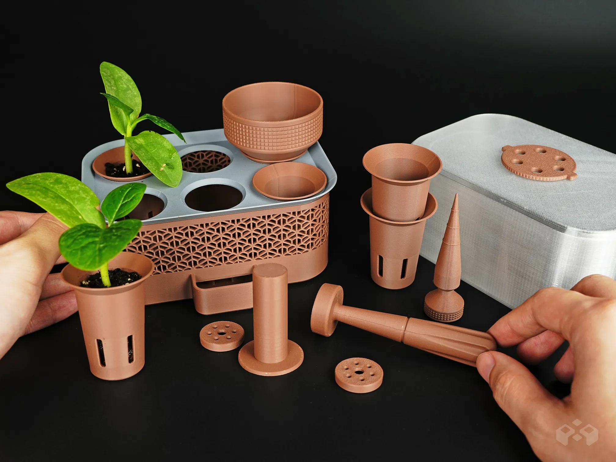 While the previous version highlighted the Asanoha pattern, which is associated with organic growth and intended for family use and therapeutic gardening, this edition introduces the Bishamon pattern. Known for its geometric strength and balance, the pattern brings a sense of order and modernity, making it well-suited for minimalist spaces and design-conscious users. Although the visual expression has shifted, the structural logic remains consistent: each component is modular, interchangeable, and designed for an efficient, flexible seed-starting experience.